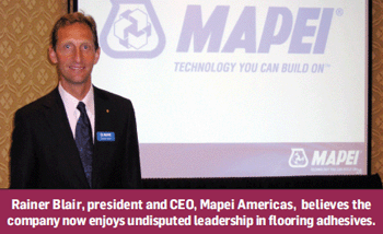 “APAC floor covering adhesives and North American tile setting materials will be sold through a dedicated national sales force,” Blair said. Mapei is increasing its sales force in a number of its product categories, most notably Concrete Restoration Systems.