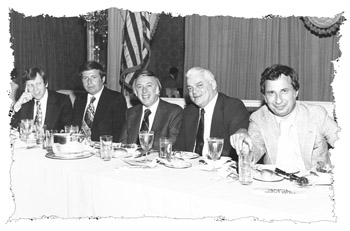 This is the 100th Remember When... photo we have published and it is fitting that it was sent to us by Jack Toizer, who has been a friend for almost that long. The picture was taken 32 years ago, on April 17, 1974, at the Plaza Hotel in New York City. The occasion was an Anti-Defamation League Dinner and this seems like a portion of the head table. Shown from left, are: unidentified; Jack Toizer, vice president of Ozite Corp.; Wolfe Nichols, president of Viking Carpet, a division of Commercial Affiliates; Bill Delaney of Lees Carpets, and John Graham, president of Monticello Carpet Mills, both divisions of
