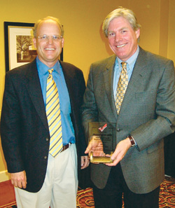 | | | 1st Resilient: Along with taking top overall honors, Mannington took home a number of trophies in the individual categories, including first place for Resilient. Duncan and Holm switched places for this picture. |