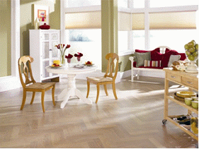 And an all-new herringbone product, French Quarter (Handworks Collection), provides remarkable upscale styling with an embossed-in-register finish.  The 8mm product is  3-9/16” x 17-3/4”and has pickled oak and merbau finishes.  It can be installed in a variety of patterns using Instaclic technology, and provides dealers with a very unique look for upscale customers.  French Quarter features a 25 year (5 year medium commercial) warranty.