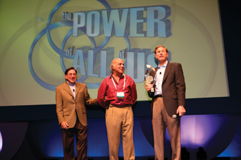 | | |  | | Harold Brewington is flanked by Alan Greenberg, left, and Howard Brodsky | | Harold Brewington, owner of Carpet One Floor & Home, Flooring America and Lighting One locations in Fayetteville, N.C., was presented with a special Lifetime Achievement Award at the recent Global Summit. According to CCA Global co-CEOs Howard Brodsky and Alan Greenberg, Brewington was selected because he embodies so many of the company’s core values, from dedication to customers to the power of working as a group. “As an independent retailer, he has made a commitment to strengthen his community and to serve his customers.” With all of his retail locations combined, he expects to reach sales of more than $26 million this year. |