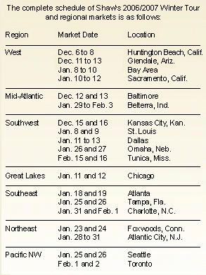 The winter tour is themed “In Motion,” and Kathy Young, Shaw’s creative director, says the name was suggested as a result of the company’s many new projects and developments. “From a new management team to innovative environmental initiatives, we are involved in a number of ventures that will have a significant impact on the future of Shaw and the industry as well.