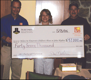 Baltimore—The L&L Co.’s 20th annual Charity Golf Tournament was held recently, drawing 137 golfers from the building and flooring industry. Participants swung away at Renditions Golf Course in Davidsonville, Md., while donations totaling $50,000 were raised for the The Believe In Tomorrow Children’s House at Johns Hopkins, which provides a family-centered supportive residence for children receiving medical care.