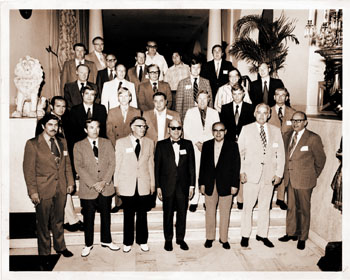 | | Dev O’Reilly of NetFloor sent us this great photo taken at a 1973 Roxbury Carpet distributor meeting in Boston. How many do you recognize? First row, from left, are Bill Barclay of Klaess-Barclay; Bill Johnson of Roxbury Carpet; Bill Lujan of L&H Distributors; Alex Stanton and Harry Liman of Stanton Co., and Walter Rodgers and Bob Baines of Berven Carpet. Second row, same order: Jeff Klaess of Klaess-Barclay; Arny Numark of Jersey Carpet; Barry Ford of Roxbury; Bill Verbo of Stanton; Jerry Thomas and Bob Hendy of Roxbury, and Day Jordan of Jordan Distributors. Third row, same order: Harold Spurway and Russ Kuehn of Carson Pirie Scott; Fred Willoughby of DuPont; Don Lujan of L&H Distributors; Pat Shaw of Carson Pirie Scott, and Dev O’Reilly of Port Distributors. Fourth row, from left, are Dean McKinney of Carson Pirie Scott; Bill Kelly and George Hartman of Raub Supply; John Figh of Chase Manhattan Bank; Jack Ahmann of Carson Pirie Scott; Steve Friedman of New England Floor Covering, and Ed Schehl of Raub Supply. |