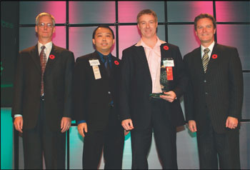 BuildDirect has been named as one of the winners of the prestigious British Columbia Export Awards. The company was recognized as one of 24 top exporters in British Columbia, Canada, and the top exporter in the Professional and Services category. The winners were announced at a gala luncheon ceremony, held at the Hyatt Regency Hotel in Vancouver, B.C. Co-hosted by Canadian Manufacturers & Exporters and the Ministry of Economic Development, the luncheon was attended by a wide cross-section of British Columbia’s business community. From left, David Greer, chair of the B.C. Division for Canadian Manufacturers & Exporters; Christopher Chan, area manager, business development, Canada;