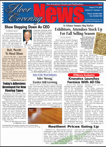 Shaw Industries and one of the main architects of the modern floor covering industry, announced his plans to step down effective Sept. 1. He will remain on the board and will advise, at the request of management, on long-range planning which includes potential acquisitions.