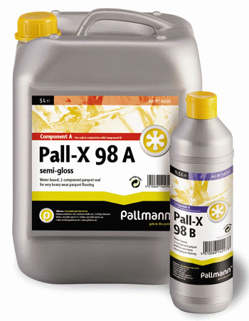 Pall-X 98 combines components A and B to form a high-tech matte or semi-matte sealant for heavy wear wood flooring. Pall-X 98 A/B provides excellent resistance to heavy mechanical wear and chemicals in industrial locations requiring maximum durability and impressive appearance.