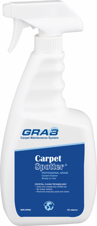 Grab Carpet Spotter is a general spot remover and pre-treatment cleaner. A unique blend of cleaning agents designed for quick removal of everyday spots. Using a trigger sprayer, this easy to use spotter can be applied directly to the soiled areas then blotted dry with a clean cloth after a few minutes. Apart from Grab Carpet Spotter having superior cleaning capabilities, we are the only carpet cleaning solution that incorporates Fresh-N-Guard™ a patented EPA registered anti-microbial. Fresh-N-Guard offers long term prevention against mold fungus and odor causing bacterial cells. Through this patented formula, Grab Carpet Spotter acts as a fabric preservative and static guard, protecting your carpet from attracting dirt and dust.