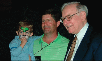 Warren Buffett, right, graciously posing with SFA members and their families. |