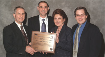 | | | DeSitter wins de-award. The Chicago Floorcovering Association (CFA) recently presented Bolingbrook, Ill.-based DeSitter Flooring—with three suburban Chicago locations—with its Retailer of the Year award for 2006. The award was presented at the CFA Presidential Ball, held at the Wyndham Hotel in Lisle, Ill. DeSitter was chosen as the top retailer from more than 150 eligible CFA members and has been one of the final three nominees in the last four years. Pictured, from left, are: Steve DeSitter and Tom Cunningham, co-owners of DeSitter Flooring; Linda Hunt, CFA president, and Scott Rozmus, president of FlorStar Sales, sponsor of the award. |