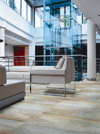 Miralles explained the tile in Inox will scratch, and it will react to metal. The material was designed for light commercial and residential applications. “It is for interior floors and walls, and only facades on the exterior. It’s all steel and tinted different colors.”