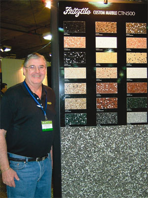 Fritz Industries, makers of a unique “flexible” terrazzo product called Fritztile, also enjoyed a great show. “Our product installs like a vinyl composition tile as opposed to our competition, which typically installs its product, a more rigid material, as if it was a ceramic tile with a grout joint,” said John Blanton, national sales manager. “Ease of installation is one of our main features. Over the years, due to technology, our product has gone down from a 1/2-inch product to today, with some of the modified polyesters, it is now an 1/8-inch product. It’s much lighter and easier to ship and install. Advances in technology have helped us considerably.”