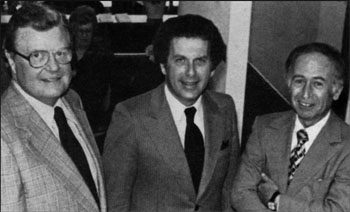 Back in January of 1979, Lowy Enterprises, a prominent Midwest distributor, held a grand opening at its facility in New Brighton, Minn., and drew a huge crowd, including executives of many of its suppliers. Shown here, all smiling, are Joe Quirk, left, executive vice president of Burlington Industries; Irv Harvey, center, president of Galaxy Carpet Mills, and Irv Pomerantz, Galaxy’s executive vice president.