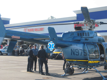 The kickoff announcement included the Delaware State Police helicopter, motorcycle unit, and the newly created bicycle section that will patrol the heavily traveled shopping outlets along Highway One. Lewes Police Chief Ronald Gooch and Rehoboth Beach Police Chief Keith W. Banks joined Delaware State Police Superintendent Colonel Thomas F. MacLeish for the kickoff event, along with officers from Dewey Beach and Bethany Police Departments. Sussex County EMS coordinated fire and paramedic displays from Lewes Fire Department and Rehoboth Beach Fire Company. Beebe Medical Center was represented by Jeffrey M. Fried and several doctors and nurses, some of whom work in the facility’s trauma and injury prevention units.