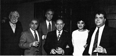 | | This photo was taken almost 20 years ago during the Atlanta winter rug market. Enjoying cocktails at the end of the day are, from left, Bud Wyman of Rug-Hold; Walter Moomjy and Jim Allen of Einstein Moomjy; Artie Scher of Rug-Hold, and Claudia Moomjy and John Einstein of Einstein Moomjy. |