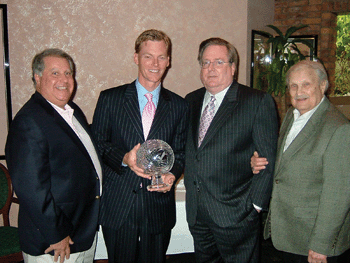 Shaw’s Scott Sandlin flanked by FCNews’ Mike Blick, left, Al Wahnon, & WFCA’s Chris Davis. |