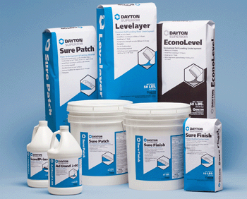 Dayton’s self-leveling toppings include Level Topping, designed for indoor use, and Level Topping EXT, developed for exterior and interior applications. A polymer-modified, trowelable underlayment called Sure Finish skim coats up to 30 square feet per pound, with no priming or additives required, enabling flooring installation within 30 minutes. Sure Patch is a patch requiring no priming and can be installed in about an hour.