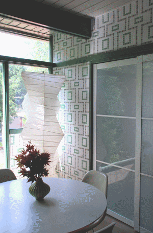 Josephine DeSanto, owner of Space Bank Design, specializes in the restoration and preservation of homes built in the 1950s and says that she has used Hakatai mosaic glass tile in “almost every project,” since discovering www.hakatai.com some five years ago. This year, when Hakatai launched its new Repeating Patterns program, the company promptly delivered its first order to DeSanto and Space Bank Design. For the modernization of her own mid-century home, DeSanto selected four different colors of ¾” x ¾” mosaic glass tiles from the Cartglass Classic Series — Porcelain, Meadow, Pale Grey and Hail — which she installed on all four walls of the kitchen.