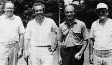 Here’s a Diamond in the rough. In 1982, the Floor Covering Association of Greater Philadelphia held its annual golf outing at the Meadowlands Country Club and attracted record attendance. This foursome at the third hole, included, from left, Bill Donovan of Donovan Rug Co., Wilmington, Del.; the sparkling Bernie Diamond of Allen Carpet Cushion; Jack Morgan of Magee Glanz Co. and golf chairman of the day, and Jack Lucas of J. B. Van Sciver, Philadelphia.