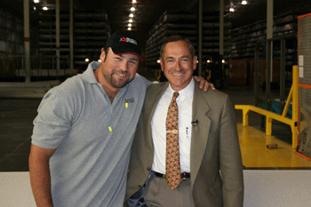 Really Big Things host Matt Rogers is welcomed by Carl Bouckaert,