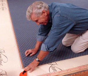 Karastan’s director of installation training, Jim Walker, demonstrates pattern tolerance. |