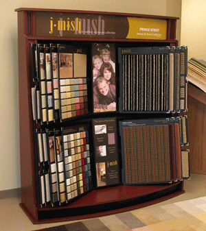 The entire line of J. Mish Signature Collection styles, along with its most popular Prince Street House & Home offerings, can be beautifully displayed in J. Mish’s updated rack system. The unit features large, 24" x 18" sample cards, along with smaller cards for the import products. All styles are fully represented with complete color swatches, product descriptions and room scene images. Its upright, 57" high, posture is designed with respect to retailers’ floor space, occupying an area of only 10 square-feet.