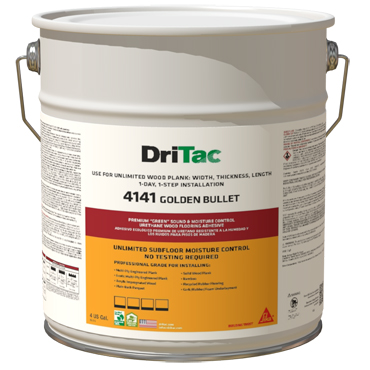 September 2023: Sika-DriTac is relaunching DriTac 4141 Golden Bullet, a single-component, multiple-solution adhesive that offers unlimited subfloor moisture protection with no testing required for residential and commercial hardwood flooring installations.