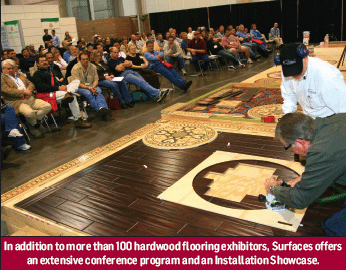 Every type of hardwood flooring is featured at Surfaces: from engineered to solid, exotics to domestics, unfinished to factory finished and everything in between. In addition, the latest fashions, accessories and installation methods will be on display. Surfaces also offers the opportunity to meet face to face with top-level hardwood flooring executives from companies such as Anderson,