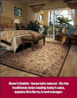 Shaw Living, said the company’s top two selling area rugs are Percussion in ebony and Chablis in natural. Aside from their attractive prices, fashion is the key to its top sellers. “Contemporary and transitional are the high-selling decorating styles today, and Percussion and Chablis fit that fashion bill respectively.”