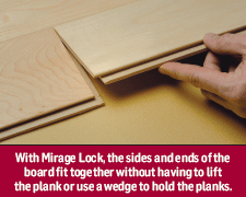Thanks to the innovative technology employed, Mirage Lock uses six times less hardwood than the conventional 3/4-inch solid plank to cover the same floor surface. Finally, the Mirage Rightloc system is constructed to allow up to three reinstallations for a longer product life and cleaner environment. Mirage Lock is available in 45/16-inch planks in red oak and maple and comes in six colors.