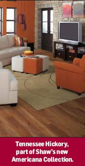 Shaw will also have a new beveled edge introduction this fall called The Americana Collection. Wilkerson said it includes a variety of color options and popular species such as teak, pecan, ash, cherry and hickory. “All our beveled edge products now feature Shaw’s Lock ’N Place technology, meaning they can be installed quickly and simply using a ‘lock and fold’ technique. This has been an extremely popular enhancement with all our customers and their installers.”