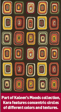 Kaleen is also introducing its Moods collection this fall. A modern group of seven designs, Moods offers a multi-textured base with bold bright color. “Moods is targeted for a sophisticated, discriminating shopper that knows exactly what she is looking for,” Barkley explained.
