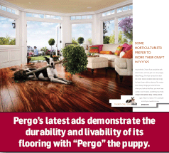 “‘Pergo’ connects with today’s laminate customer—the family-oriented, predominately female shopper who is looking for a floor that’s durable, beautiful and easy to maintain,” Small explained. “The fun, inviting appeal of ‘Pergo’ in the ads will attract pet lovers, parents and a variety of other consumers.”