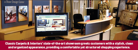 Finally, Zimmerman said, it’s about differentiating your business from the competition. Classic Carpets & Interiors’ sales staff attend sales and product knowledge seminars, and it features two large flat screen TVs in its showroom to offer new e-based technology.