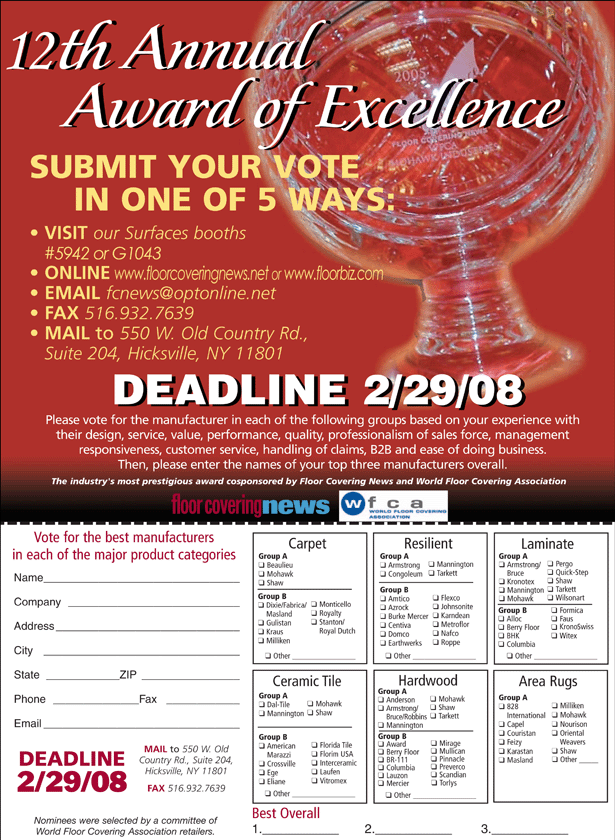 | | | The 12th Annual Award of Excellence Co-sponsored by FCNews and WFCA is the industry's most prestigious award. |