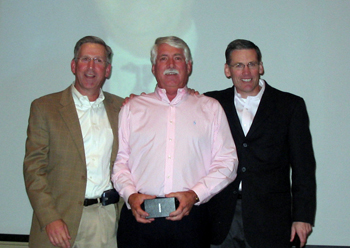 | Bill Roach, flanked by Dennis Thiets (left) and Bill Storey (right) |