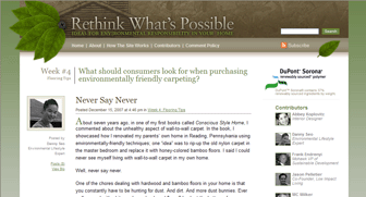 Dalton—Research shows consumers are taking steps to live in a more environmentally responsible world. With that in mind, DuPont is hosting the “Rethink What’s Possible” Web site (www.rethinkwhatspossible.com), an online forum to examine environmental responsibility in the areas of home decorating and remodeling, providing industry experts and consumers with a platform to share their ideas—new and traditional—for ‘greening’ the home.