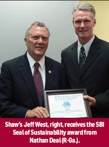 The Seal was recently awarded to Shaw on Capitol Hill. According to Jeff West, director of environmental affairs for Shaw’s commercial division, the SBI award provides third party recognition for the manufacturer’s hundreds of sustainability/ environmental stewardship efforts. “The Seal is another validation of the sustainable business practices in place throughout Shaw. Our commitment to environmental stewardship and corporate social responsibility is about action, not promises. It exists in real examples of practices currently in place which we continue to improve and refine each and every day.”