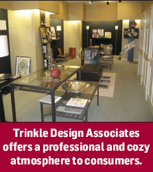 Trinkle continued, pointing to his showroom—where he noted atmosphere is an important factor—as a key to keeping clients. “I think my showroom is very progressive. It is pleasing and informative to see visuals of concepts and products. My clients, employees and vendors are very impressed with my approach to achieve an atmosphere that is professional and also cozy.” He said his showroom’s message is clear: Our standards are very high.