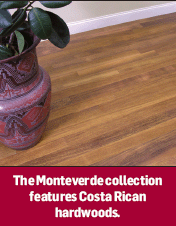 The collection features uniquely three-layer flooring construction blending a teak core for stability with a beautiful and hard surface made from Costa Rican hardwoods, she said. It also has an FSC mixed sources, sustainable forestry certification.
