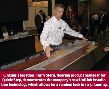 Under the company’s new slogan, “Amazing what a floor can do,” Quick•Step unveiled Linesse, “an innovative, industry-first collection,” Farabee noted, “that allows the consumer to customize the stagger of a 3-strip plank. Up to now, strip products have had a uniform end. This new technology allows for a pure random look, thereby achieving a beautifully realistic hardwood strip look.”