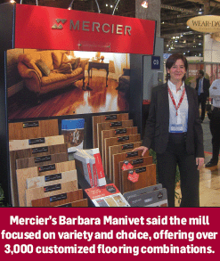 Mercier. And, that’s the company’s focus—variety and choice—offering several species, colors, widths and gloss levels. “We allow customers to mix and match, providing nearly 3,000 separate combinations to customize her specific decorating wants and tastes.”