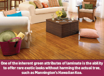 With so many green qualities to promote, laminate mills, like most other categories, are starting to put these messages into their marketing and promotional materials to better educate customers.