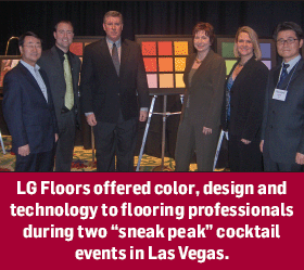 LAS VEGAS—LG Floors held “sneak peak” cocktail parties last month to preview its latest flooring options to industry professionals. Harry Brownett, vice president of sales and marketing, said the company is focused on providing collections aimed at design using technology for a broader range of colors, patterns and textures.