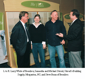Jeff Meadows, Exec.V.P. for Beaulieu of America, was pleased with Stroud’s reaction and those of other dealers, “This program gives aligned dealers Complete Bliss in just 1800 sq. ft. of floor space and is showcased for the way she (the typical carpet consumer) likes to shop.” He added, “We’re bringing her back to carpet and the dealers love it because carpet provides the best margins.”