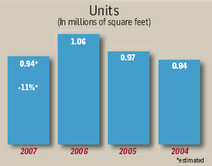 Final figures are still being calculated, but based on initial research conducted by Floor Covering News, the category in 2007 saw a drop in sales of approximately 9% to $1.26 billion compared to 2006. At the same time, units are estimated to have fallen 11% to 940 million square feet.