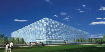 A self-supported, concrete and steel structure, the Water Cube is not only a breathtaking visual; it also represents one of the most advanced sustainable venues in the world. The building’s structural design is based on the natural formation of soap bubbles in infinite to give a random, organic appearance. The exterior is clad with 634 ETFE panels. The gas-infused panels provide heat for the building and the pools, and 80 percent of all water used will be recycled from catchments on the roof, pool backwash and overland flows.