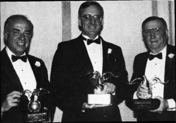Floor Covering Industry Foundation’s 9th Annual Banquet held during the Atlanta winter market, the camera captured the three industry executives honored at the dinner. Holding their awards, are Don Kuhn, left, president of Coronet Industries; Peter Chick, center, president of Sound Floor
