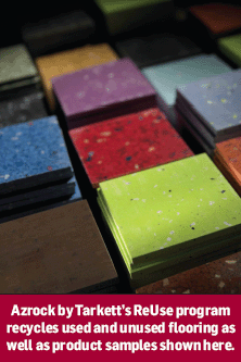 She also mentioned the environmental movement as becoming more and more prevalent as LEED continues gaining momentum. “Tarkett is currently focused on energy reduction in its manufacturing, and Azrock’s ReUse program, which recycles product samples as well as used and unused flooring into future product.”