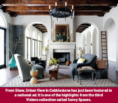 Morrow noted, one of Shaw’s newest introductions, Urban View in Cobblestone, “has just been featured in a national ad photo paired with our new wood, Grand Canyon. It is one of the highlights from the third Visions collection called Savvy Spaces. The collection is made of